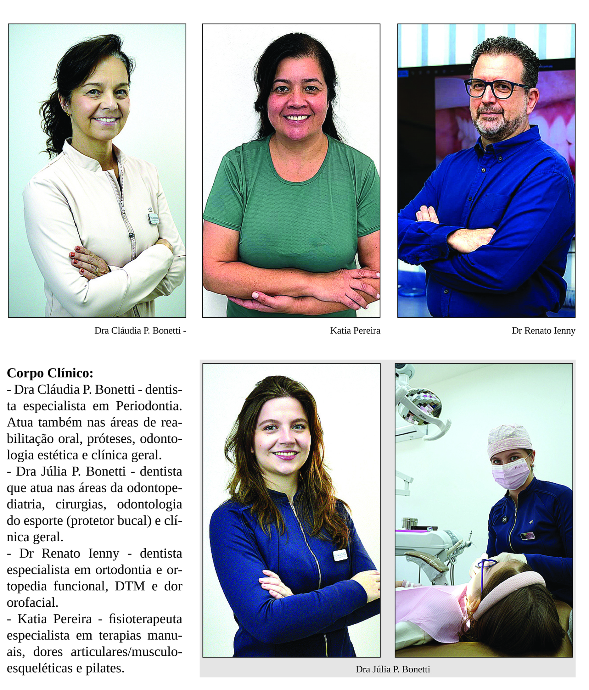 - Dra Cláudia P. Bonetti – dentista especialista em Periodontia. Atua também nas áreas de reabilitação oral, próteses, odontologia estética e clínica geral.