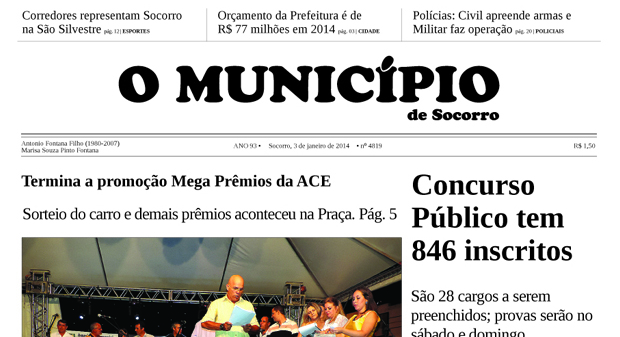 Capas Edição de 03/01/2014 By O Município 3 de janeiro de 2014 0 938 FacebookTwitterPinterestWhatsApp Leitura obrigatória Socorro recebe a primeira etapa do Brasileiro de MotoClimb com estreia de novas categorias 30 de abril de 2026 Paróquia São José Operário é criada no Oratório. Celebração será presidida por Dom Sérgio e reúne as sete comunidades que formam a nova estrutura 30 de abril de 2026 Feriado do Trabalhador é um convite para observar o céu no Polo Astronômico 28 de abril de 2026 47ª Mostra Japão traz imersão cultural e gastronomia oriental para Amparo no início de maio 28 de abril de 2026 FacebookTwitterPinterestWhatsApp Artigo anteriorEdição de 27/12/2013Próximo artigoEdição de 10/01/2014 - Anunciantes - DEIXE UMA RESPOSTA Cancelar respostaFaça o login para comentar - Anunciantes - Últimas notícias Socorro recebe a primeira etapa do Brasileiro de MotoClimb com estreia de novas categorias 30 de abril de 2026 Paróquia São José Operário é criada no Oratório. Celebração será presidida por Dom Sérgio e reúne as sete comunidades que formam a nova estrutura 30 de abril de 2026 Feriado do Trabalhador é um convite para observar o céu no Polo Astronômico 28 de abril de 2026 47ª Mostra Japão traz imersão cultural e gastronomia oriental para Amparo no início de maio 28 de abril de 2026 Cenas de interior! 28 de abril de 2026