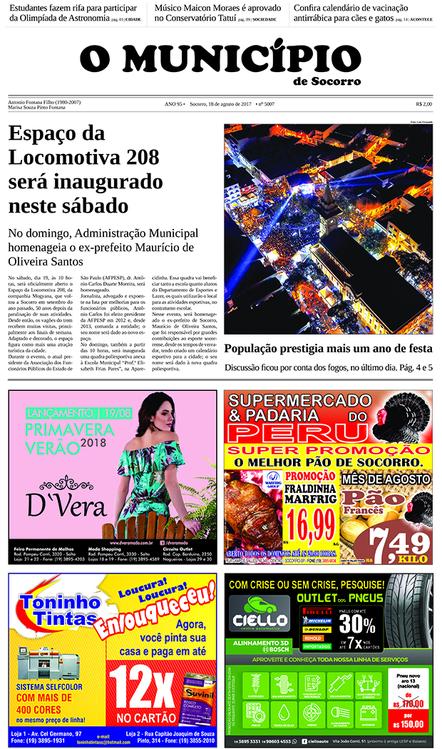 Sem categoria Edição de 18/08/2017 By O Município 18 de agosto de 2017 0 1628 FacebookTwitterPinterestWhatsApp Leitura obrigatória Socorro recebe a primeira etapa do Brasileiro de MotoClimb com estreia de novas categorias 30 de abril de 2026 Paróquia São José Operário é criada no Oratório. Celebração será presidida por Dom Sérgio e reúne as sete comunidades que formam a nova estrutura 30 de abril de 2026 Feriado do Trabalhador é um convite para observar o céu no Polo Astronômico 28 de abril de 2026 47ª Mostra Japão traz imersão cultural e gastronomia oriental para Amparo no início de maio 28 de abril de 2026 FacebookTwitterPinterestWhatsApp Artigo anteriorEdição de 11/08/2017Próximo artigoEdição de 25/08/2017 - Anunciantes - DEIXE UMA RESPOSTA Cancelar respostaFaça o login para comentar - Anunciantes - Últimas notícias Socorro recebe a primeira etapa do Brasileiro de MotoClimb com estreia de novas categorias 30 de abril de 2026 Paróquia São José Operário é criada no Oratório. Celebração será presidida por Dom Sérgio e reúne as sete comunidades que formam a nova estrutura 30 de abril de 2026 Feriado do Trabalhador é um convite para observar o céu no Polo Astronômico 28 de abril de 2026 47ª Mostra Japão traz imersão cultural e gastronomia oriental para Amparo no início de maio 28 de abril de 2026 Cenas de interior! 28 de abril de 2026