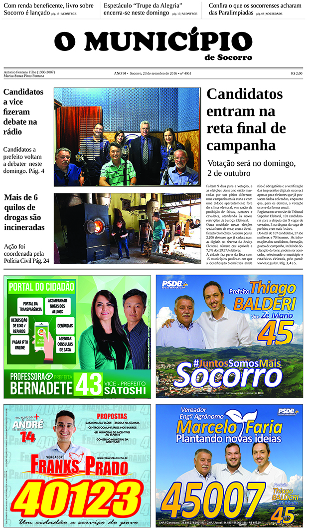 Capas Edição de 23/09/2016 By O Município 23 de setembro de 2016 0 747 FacebookTwitterPinterestWhatsApp Leitura obrigatória Feriado do Trabalhador é um convite para observar o céu no Polo Astronômico 28 de abril de 2026 47ª Mostra Japão traz imersão cultural e gastronomia oriental para Amparo no início de maio 28 de abril de 2026 1º Encontro de Cães de Socorro terá adoção, cãominhada e atrações para toda a família no Parque da Cidade 24 de abril de 2026 17ª edição do Socorro Mostra a Sua Cultura homenageia Ademir Cantor. Evento será neste fim de semana, na Praça da Matriz 17 de abril de 2026 FacebookTwitterPinterestWhatsApp Artigo anteriorEdição de 16/09/2016Próximo artigoEdição de 30/09/2016 - Anunciantes - DEIXE UMA RESPOSTA Cancelar respostaFaça o login para comentar - Anunciantes - Últimas notícias Feriado do Trabalhador é um convite para observar o céu no Polo Astronômico 28 de abril de 2026 47ª Mostra Japão traz imersão cultural e gastronomia oriental para Amparo no início de maio 28 de abril de 2026 Cenas de interior! 28 de abril de 2026 Edição 24/04/2026 24 de abril de 2026 1º Encontro de Cães de Socorro terá adoção, cãominhada e atrações para toda a família no Parque da Cidade 24 de abril de 2026