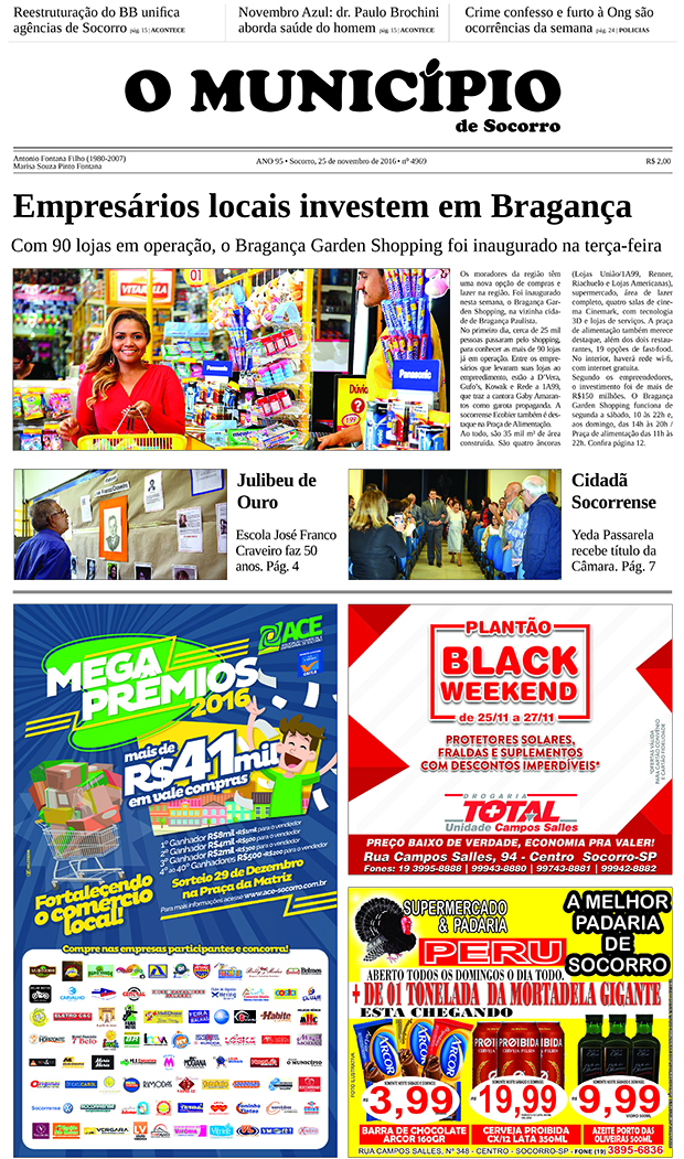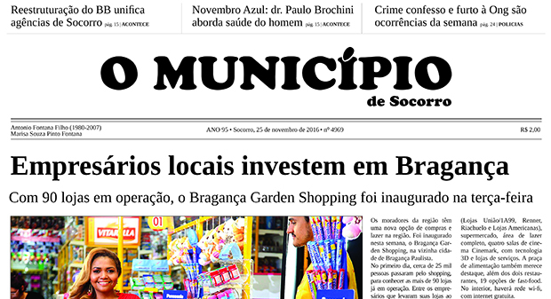 Capas Edição de 25/11/2016 By O Município 25 de novembro de 2016 0 951 FacebookTwitterPinterestWhatsApp Leitura obrigatória Ateliê CASA das Artes é certificado como Ponto de Cultura pelo Ministério da Cultura 2 de março de 2026 Evento reúne literatura, música e arte neste sábado na Sociedade Italiana 27 de fevereiro de 2026 Laboratório Cristália se pronuncia sobre patentes da Polilaminina 26 de fevereiro de 2026 11º Encontro Brasileiro de Autos Antigos já tem data confirmada; 50 anos do Concorde marca edição de 2026 26 de fevereiro de 2026 FacebookTwitterPinterestWhatsApp Artigo anteriorEdição de 18/11/2016Próximo artigoEdição de 02/12/2016 - Anunciantes - DEIXE UMA RESPOSTA Cancelar respostaFaça o login para comentar - Anunciantes - Últimas notícias Hora do rango! 3 de março de 2026 Ateliê CASA das Artes é certificado como Ponto de Cultura pelo Ministério da Cultura 2 de março de 2026 Vagas no Conservatório: aulas promovem prática coletiva e valorização da música 2 de março de 2026 Edição 27/07/2026 27 de fevereiro de 2026 Evento reúne literatura, música e arte neste sábado na Sociedade Italiana 27 de fevereiro de 2026