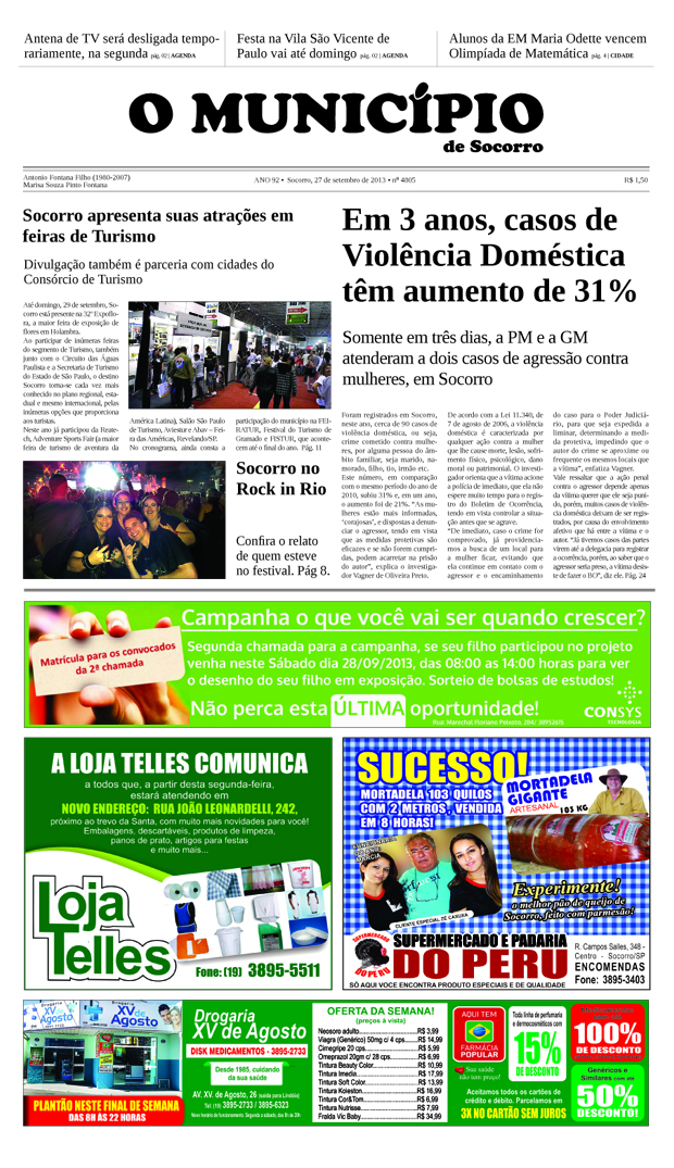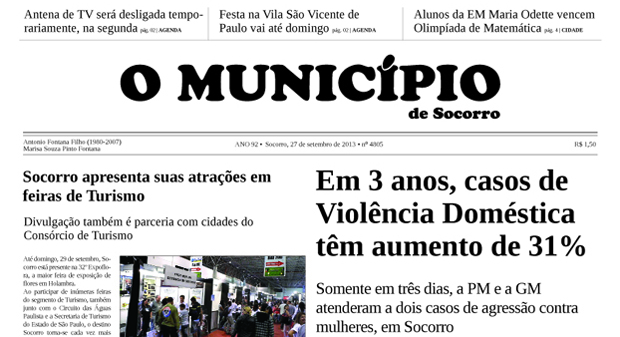 Capas Edição de 27/09/2013 By O Município 27 de setembro de 2013 0 1010 FacebookTwitterPinterestWhatsApp Leitura obrigatória 17ª edição do Socorro Mostra a Sua Cultura homenageia Ademir Cantor. Evento será neste fim de semana, na Praça da Matriz 17 de abril de 2026 Festival gastronômico celebra o Mês do Rei em Holambra 15 de abril de 2026 Feriado de Tiradentes chega com sessões especiais no Polo Astronômico em Amparo 15 de abril de 2026 Amparo 197 anos: dupla Marcos & Belutti é a grande atração na noite de sábado 9 de abril de 2026 FacebookTwitterPinterestWhatsApp Artigo anteriorEdição de 20/09/2013Próximo artigoEdição de 04/10/2013 - Anunciantes - DEIXE UMA RESPOSTA Cancelar respostaFaça o login para comentar - Anunciantes - Últimas notícias Edição 17/04/2026 17 de abril de 2026 17ª edição do Socorro Mostra a Sua Cultura homenageia Ademir Cantor. Evento será neste fim de semana, na Praça da Matriz 17 de abril de 2026 Festival gastronômico celebra o Mês do Rei em Holambra 15 de abril de 2026 Feriado de Tiradentes chega com sessões especiais no Polo Astronômico em Amparo 15 de abril de 2026 Por que Ele vive! 14 de abril de 2026