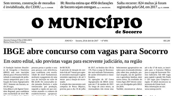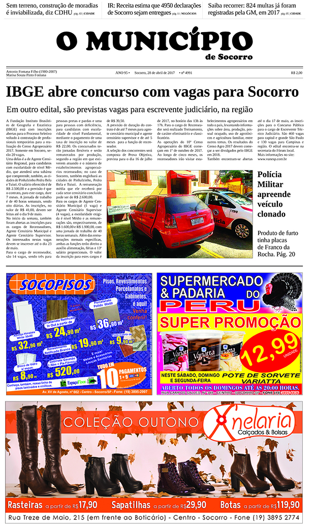 Capas Edição de 28/04/2017 By O Município 28 de abril de 2017 0 987 FacebookTwitterPinterestWhatsApp Leitura obrigatória Socorro recebe a primeira etapa do Brasileiro de MotoClimb com estreia de novas categorias 30 de abril de 2026 Paróquia São José Operário é criada no Oratório. Celebração será presidida por Dom Sérgio e reúne as sete comunidades que formam a nova estrutura 30 de abril de 2026 Feriado do Trabalhador é um convite para observar o céu no Polo Astronômico 28 de abril de 2026 47ª Mostra Japão traz imersão cultural e gastronomia oriental para Amparo no início de maio 28 de abril de 2026 FacebookTwitterPinterestWhatsApp Artigo anteriorEdição de 20/04/2017Próximo artigoEdição de 05/05/2017 - Anunciantes - DEIXE UMA RESPOSTA Cancelar respostaFaça o login para comentar - Anunciantes - Últimas notícias Socorro recebe a primeira etapa do Brasileiro de MotoClimb com estreia de novas categorias 30 de abril de 2026 Paróquia São José Operário é criada no Oratório. Celebração será presidida por Dom Sérgio e reúne as sete comunidades que formam a nova estrutura 30 de abril de 2026 Feriado do Trabalhador é um convite para observar o céu no Polo Astronômico 28 de abril de 2026 47ª Mostra Japão traz imersão cultural e gastronomia oriental para Amparo no início de maio 28 de abril de 2026 Cenas de interior! 28 de abril de 2026