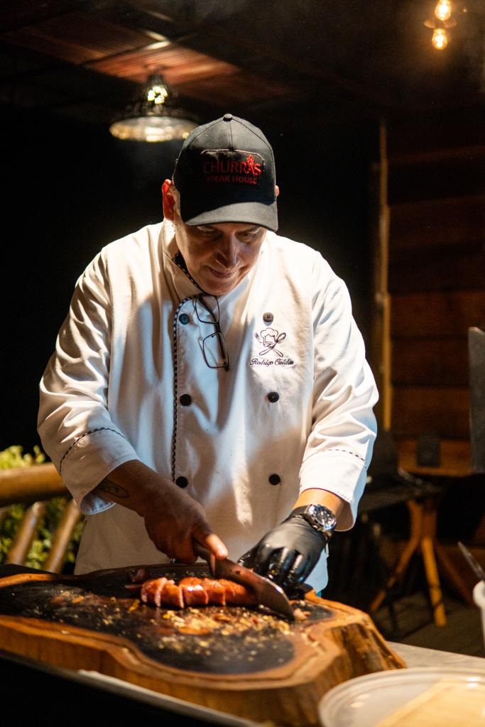 A frente da Churras Steak House, está o Chef Rodrigo Caldas, recém chegado em Socorro, com ampla experiência em carnes na brasa, em eventos por vários estados.