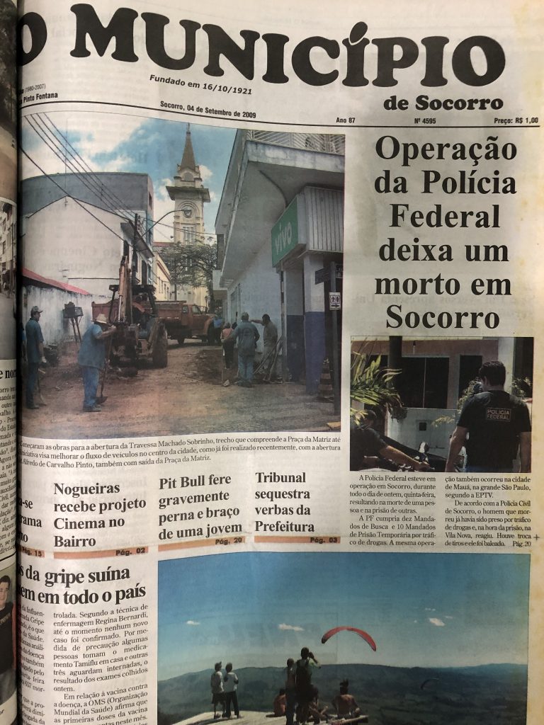 Um belo registro da capa nº 4595, de 4 de setembro de 2009: a foto mostra as obras para a abertura da Travessa Machado Sobrinho – trecho que liga a Praça da Matriz até a Rua 13 de Maio. A iniciativa teve por objetivo melhorar o fluxo de veículos na cidade. A Rua Dr. Alfredo de Carvalho Pinto também foi aberta pelo mesmo motivo.